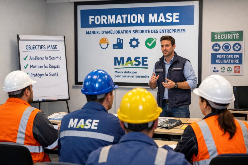 Dans le domaine industriel, le respect de la sécurité et de la réglementation sont gage de réussite. Une des clés pour atteindre et maintenir ses acquis repose sur une formation continue. C’est pour cette raison que nous proposons la formation MASE (Manuel d’Amélioration Sécurité des Entreprises).
